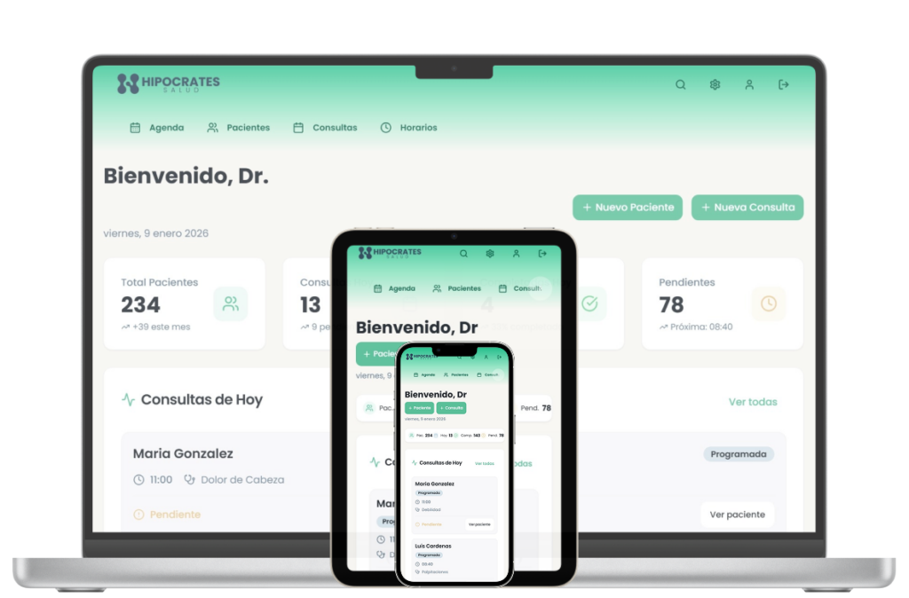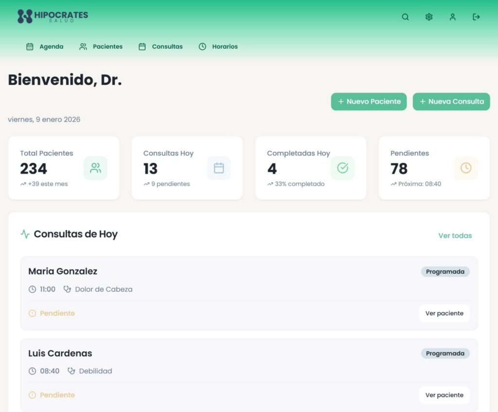 - Simplicidad Radical: Si su equipo sabe usar WhatsApp, sabe usar Hipócrates. Diseñado para ser liviano y sin fricciones.