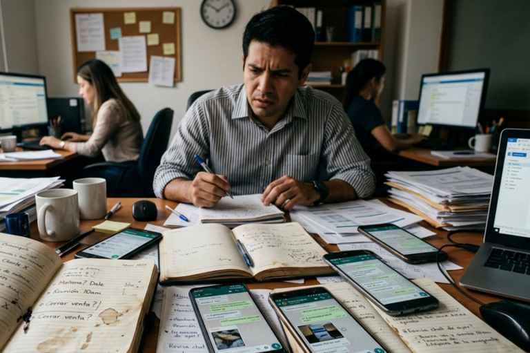 Agendas en papel y chats de WhatsApp que impiden ver la realidad del negocio y fragmentan la memoria institucional.